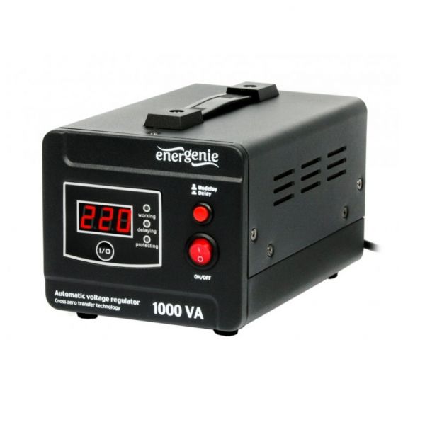 Автоматичний регулятор напруги EnerGenie 220 В 1000 ВА призначений для роботи з побутовими і промисловими електроприборами потужністю до 600 Вт від мережі змінного струму 220 В/50 Гц.
