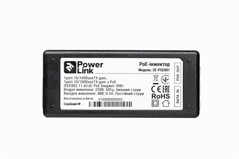 РоE-інжектор 2E Powerlink PSE801 відповідає Стандартам IEEE 802.3at (PoE +) / 802.3af (PoE) і призначений для одночасної передачі живлення (до 30 Вт) пристроїв з підтримкою PoE, яким потрібно живлення підвищеної потужності, таким як IP-камери, бездротові точки доступу або IP-телефони. При їх використанні можна розмістити РоE пристрій практично в будь-якій точці будівлі, наприклад, на стелі або стіні, не піклуючись про те, що поблизу відсутні розетки мережі живлення. Рої-інжектори дозволяють використовувати переваги Ethernet-з’єднання, при цьому забезпечуючи подачу електроживлення до пристроїв з підтримкою PoE.