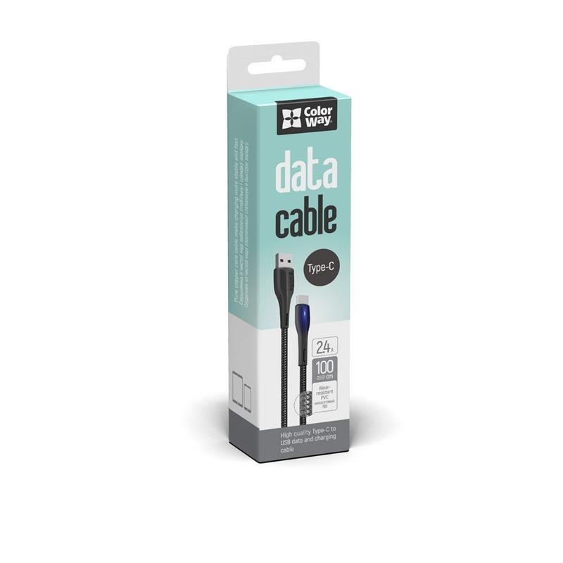Кабель ColorWay USB - USB Type-C (M/M), PVC + Led, 2.4 А, 1 м, Black (CW-CBUC034-BK)
