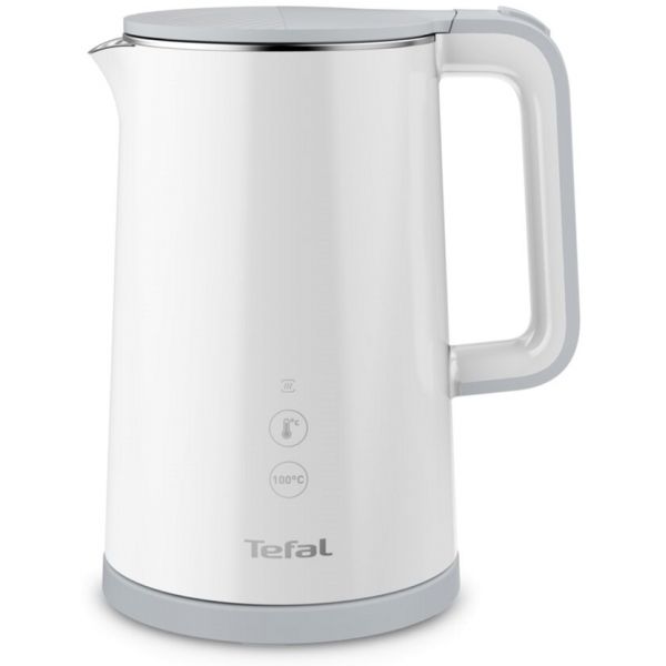 Насолоджуйтеся гарячими напоями потрібної температури на будь-який смак, з електричним чайником Tefal — сучасним, інтуїтивно зрозумілим і вишуканим. Чайник обладнаний мінімалістичним цифровим екраном без рамок, на якому показується температура води в реальному часі, а також п'ятьма параметрами температури (40 °C/70 °C/80 °C/90 °C/100 °C), що ідеально підходить для нагрівання води одним торканням. Його конструкція з подвійними стінками зберігає тепло, забезпечуючи водночас прохолодну на дотик поверхню зовні для абсолютної безпеки. Додаткові зручні функції містять 30-хвилинну функцію підтримки тепла, щоб ваші напої були готові, коли вам це потрібно, автоматичне відкривання кришки для легкого наповнення, основу, що обертається на 360°, й автоматичне вимкнення для безпечного використання. Плюс, завдяки великому об'єму 1,5 л, він ідеально підходить для всіх ваших потреб у гарячих напоях. Tefal — сучасне рішення електричного чайника.