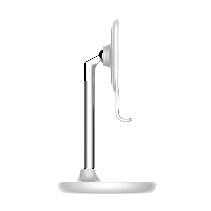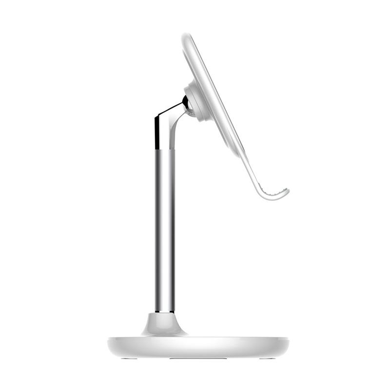 Максимально проста і зручна в експлуатації. Силіконова поверхня підставки запобіжить ковзанню гаджета і вбереже його від подряпин, а функціональний виріз дозволить в будь-який момент підключити кабель зарядки. Для надійного розміщення тримача на поверхні, на нижній частині підставки є силіконові антиковзні прокладки. Продуманий елегантний дизайн підставки гармонійно впишеться в будь-який інтер’єр не займаючи багато місця.