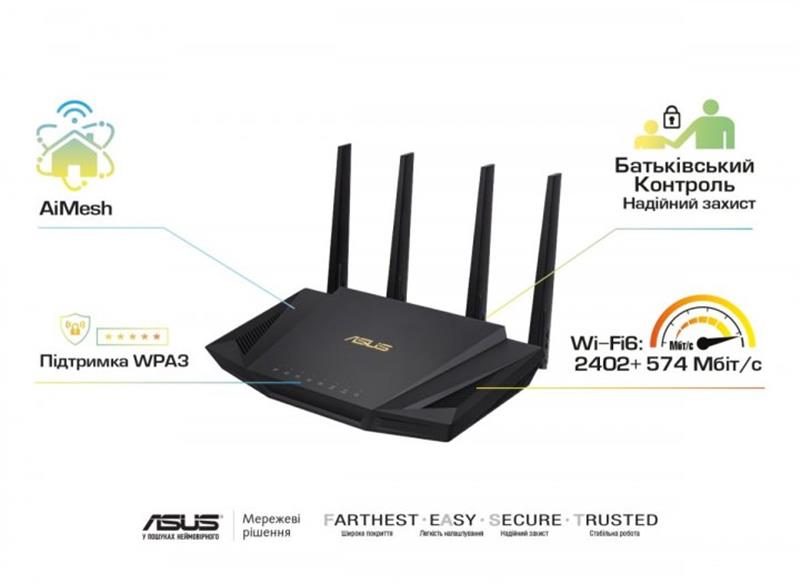 Як правило, RT-AX58U забезпечує покриття мережі Wi-Fi зі стабільним сигналом в кожному куточку будинку або квартири. Однак на якість покриття впливає безліч факторів, у тому числі розташування кімнат, матеріал стін і навіть меблі. Але навіть якщо в бездротової мережі є «мертві зони» зі слабким, ненадійним або взагалі відсутнім сигналом, у компанії ASUS знайдеться рішення - це технологія AiMesh, яка дозволяє об'єднати кілька маршрутизаторів ASUS в єдину мережу Wi-Fi для всього будинку, яким би великим він не був.Такий апгрейд домашньої бездротової мережі буде ще й вигідним, адже при покупці нового маршрутизатора не доведеться викидати старий - його можна буде як і раніше використовувати як додатковий вузол системи AiMesh. В рамках мережі AiMesh користувач отримує централізований контроль над усіма маршрутизаторами і «безшовний» роумінг - перехід від одного вузла до іншого здійснюється автоматично.