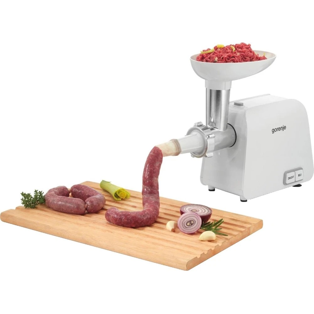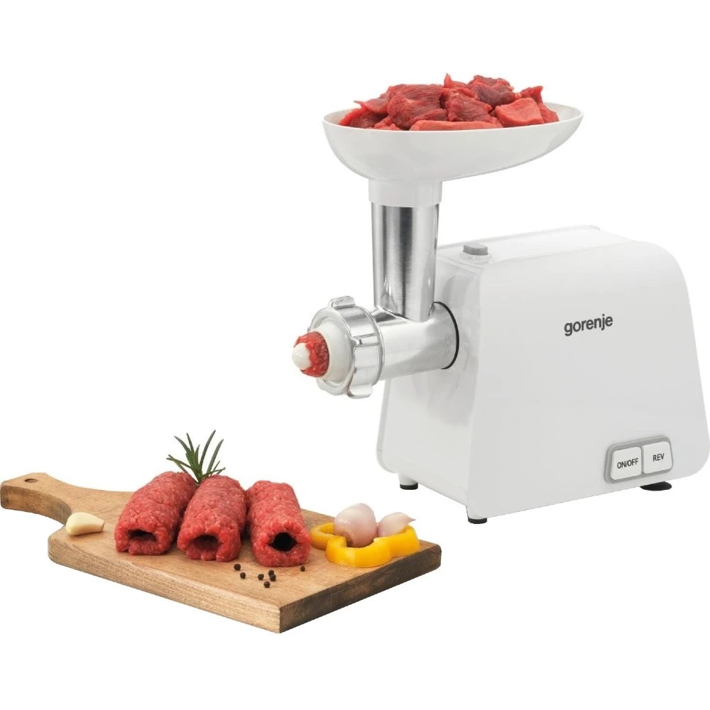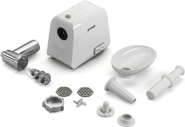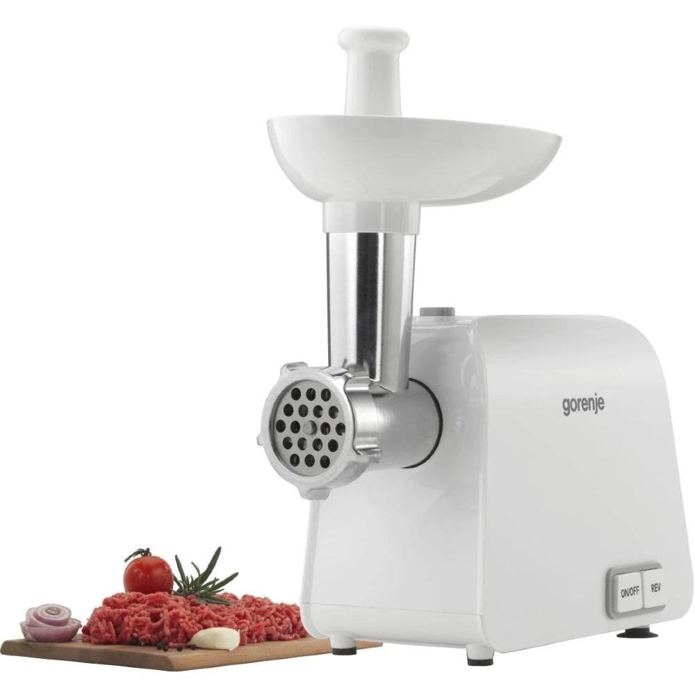 Електром'ясорубка GORENJE MG 1602 W - надійна та проста у використанні. Потужність двигуна складає 1600 Вт. Продуктивність подрібнення м'яса дорівнює 1.9 кг/хв. М'ясорубка має міцний металевий литий корпус у пластиковій оболонці. Кнопки увімкнення/вимкнення та реверсу виведені на бічну панель для зручного використання.