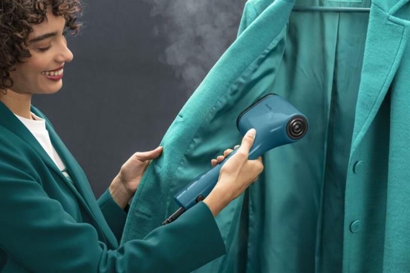 Розгладьте складки й освіжіть без шкоди для текстильних виробів з оксамитовою насадкою для плавних рухів. Видаліть все волосся і ворсинки з одягу, щоб освіжити і очистити тканину.