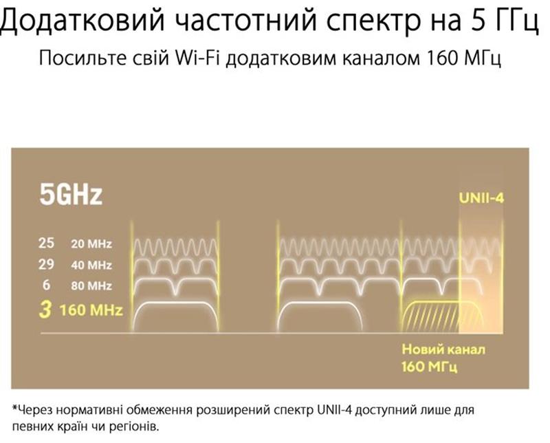 Щоб максимально покращити швидкість і стабільність роботи мережі Wi-Fi, можна виділити другий частотний діапазон 5 ГГц для обміну даними між вузлами мережі, а інші діапазони використовувати для підключення клієнтських пристроїв.