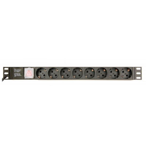 Блок розеток EnerGenie 19" 1U (EG-PDU-014) алюм. корп., 8 розеток, 16A, 3м, чорний, вилка Schuko