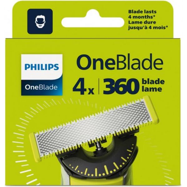 4 змінних леза, що рухаються на 360°. Підходять для всіх електростанків Philips OneBlade