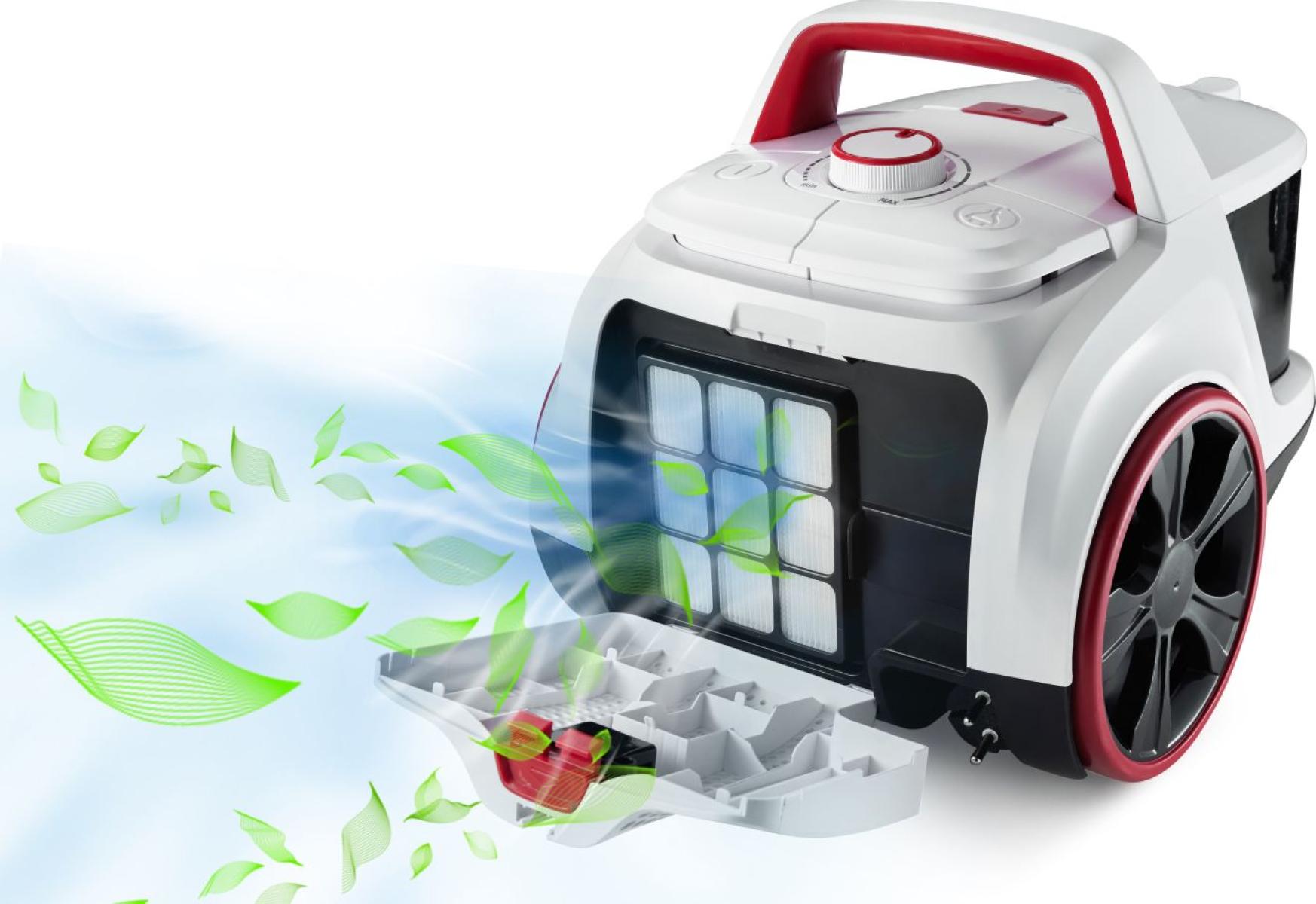 Прогумовані коліщатка запобігають ушкодженню делікатних підлогових покриттів, наприклад, паркету і забезпечують постійний контакт з поверхнею. Пилосос не залишає слідів і подряпин на гладких і твердих поверхнях.