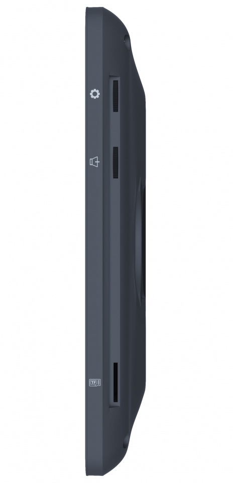 Дизайн домофону заслуговує на особливу увагу. Корпус пристрою виготовлений з пластику та представлений у трьох кольорах: срібло, графіт та білий. Розміри пристрою 193 х 123 х 18 мм. Модель вимагає настінного накладного монтажу. Все необхідне є у комплекті поставки.