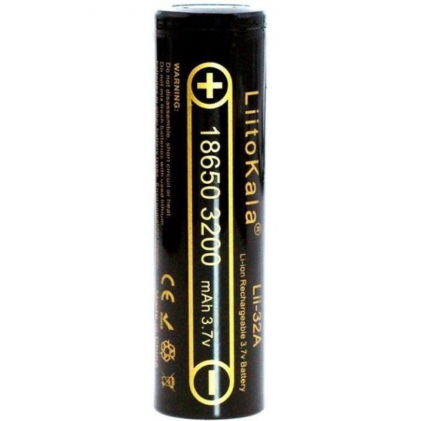 Якісний акумулятор LiitoKala Lii 32A 18650 3.7V Li-Ion 3200 mAh – високострумовий літій-іонний акумулятор з підвищеною ємністю, плоским плюсовим контактом Flat Top, без захисту. За хімічним складом це INR акумулятори (NMC, літій-марганцевий нікель) – сам катод даних акумуляторів виконаний з нікелю (Ni), кобальту (Co) та марганцю (Mn) (Li(NiCoMn)O2). Додавання до складу акумулятора марганцю та нікелю робить його безпечним, високоємним та здатним швидко віддавати енергію.