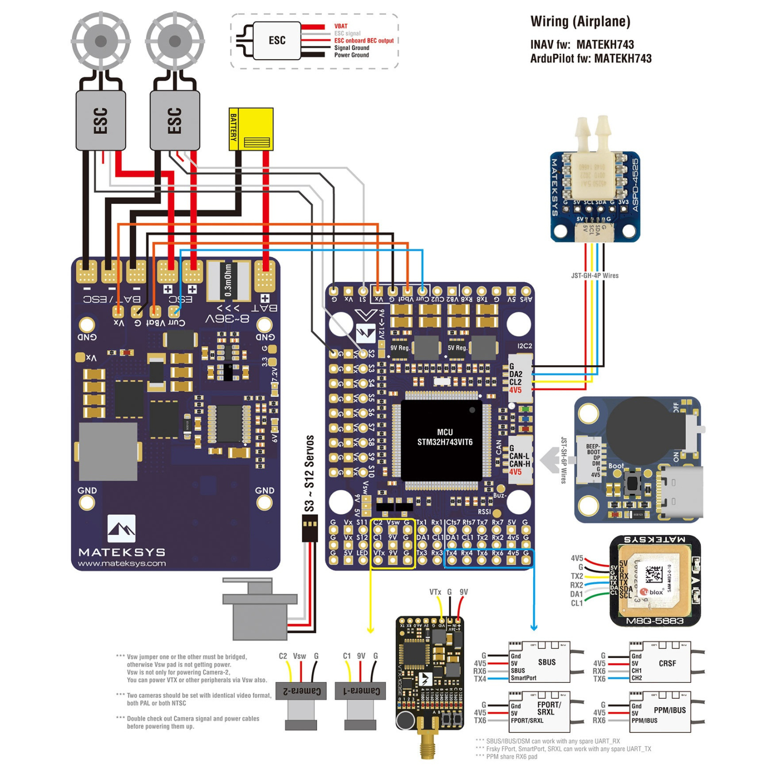 Політний контролер Matek H743-WING V3 використовує найсучасніший і найпродуктивніший процесор H743, який працює з частотою 480MHz та оперативною пам’яттю 1Mb. На платі є новий порт CAN для підтримки майбутніх периферійних пристроїв UAVCAN.
