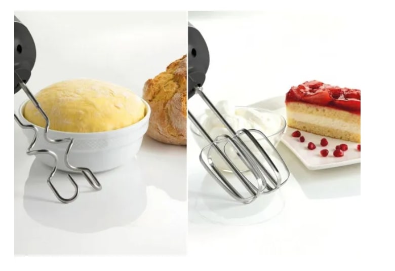 У комплекті з ручним міксером поставляються спеціально розроблені скарбнички і гачки для тіста з нержавіючої сталі. Ідеально підходить для приготування печива, хліба або збитих вершків.