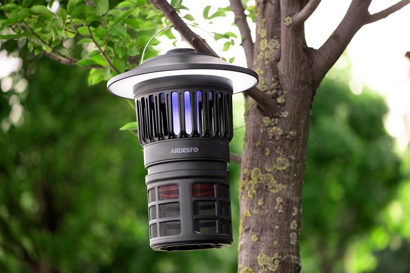 Щоб ніщо не зіпсувало відпочинок у кемпінгу чи вечірні посиденьки у дворі чи на балконі, варто подбати про захист від комарів та інших комах. Це допоможе протимоскітний ліхтар ARDESTO, оснащений акумулятором 2000 мА·ч. Пристрій цілком безпечний і придатний до використання як просто неба, так і в приміщенні.