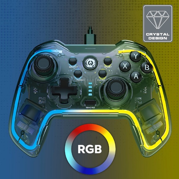 Ready player one! Підготуйтеся до гри з новим геймпадом Canyon Brighter GP-02. Він створений для забезпечення максимального зчеплення та максимального комфорту, гарантуючи, що ви зможете по-справжньому насолодитися ігровими сеансами. Модель Canyon Brighter із кришталево прозорим корпусом виправдовує свою назву. У поєднанні з RGB-підсвічуванням це має дивовижний вигляд! Пристрій підтримує режими X-входу та D-входу та має дванадцять програмованих кнопок, що дозволяють налаштовувати та покращувати ігровий процес. Ми також додали двигуни з подвійною вібрацією для правильного тактильного зворотного зв’язку.