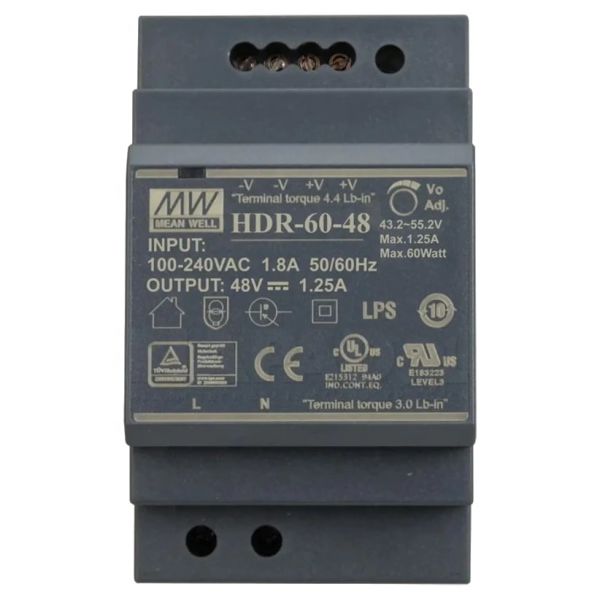 Характеристики Блок живлення Mean Well HDR-60-48 48B 1,25А