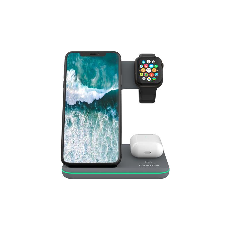 Бездротовий зарядний пристрій Canyon WS-303 15W 3in1 Gray (CNS-WCS303DG)