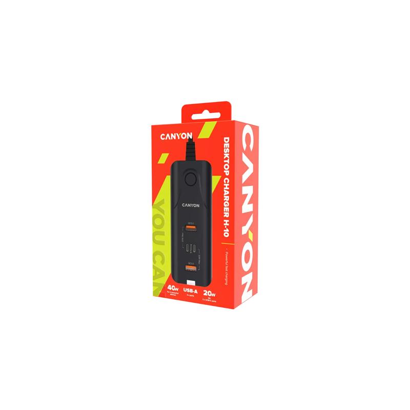 Мережевий зарядний пристрій Canyon H-10 (2USB, 2USB-C) Desk Black (CNE-CHA10B)