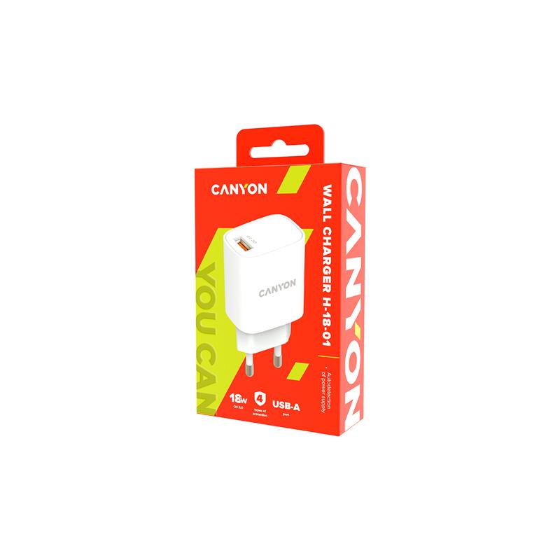 Мережевий зарядний пристрій Canyon H-18-01 (1USB, 3A) QC3.0 White (CNE-CHA18W)