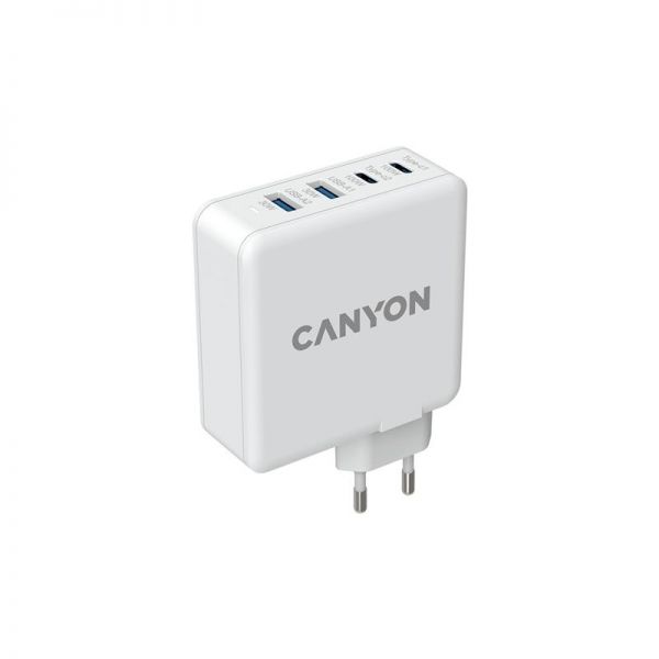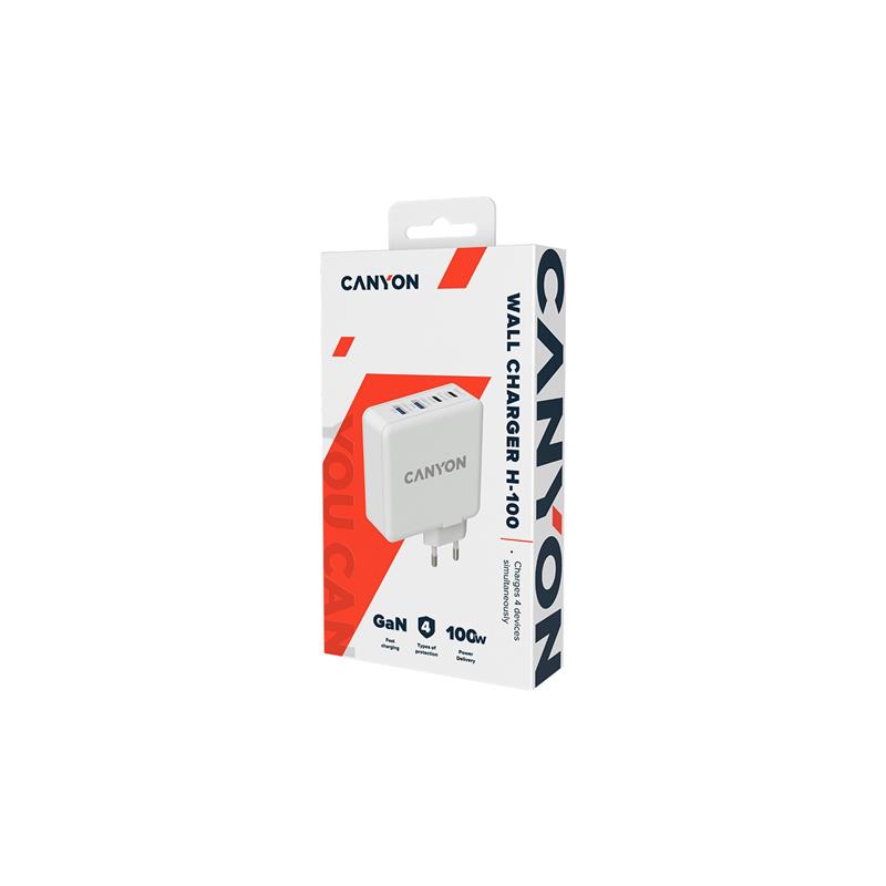 Мережевий зарядний пристрій Canyon H-100 (4USB) GaN PD 100W QC3.0 White (CND-CHA100W01)
