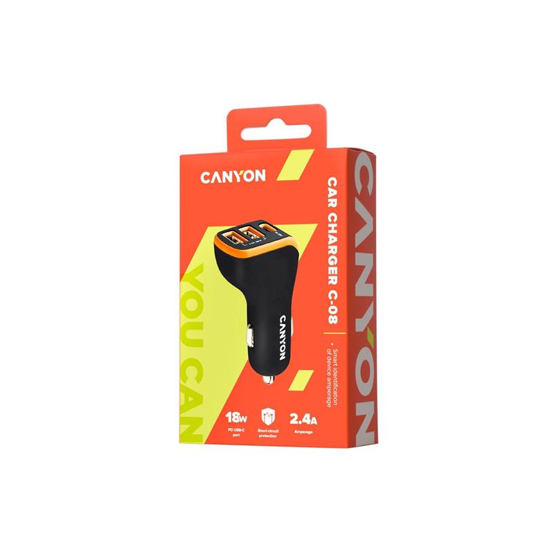 Автомобильний зарядний пристрій Canyon C-08 (3USB, 2.4A) Black Orange (CNE-CCA08BO)