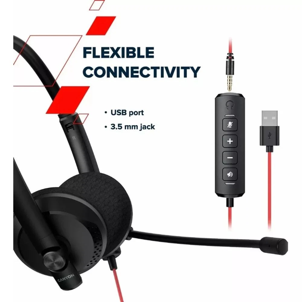 Коли ви професіонал, ваші аксесуари мають вирішальне значення для впевненості. Зустрічайте конференц-гарнітуру від Canyon, яка ніколи вас не підведе. Завдяки тонкому профілю та вазі всього 102 грам гарнітура не займе багато місця у сумці чи рюкзаку. У комплект входить м’який чохол для зручного зберігання. Гарнітуру можна приєднати за допомогою роз’єму 3,5 мм або через звукову карту USB із кнопками керування дзвінками. Звукова карта має окрему кнопку вимкнення звуку – чудова можливість уникнути незручностей під час розмови! Довжина кабелю становить 1,8 м, що забезпечує свободу пересування. Ця гарнітура сумісна з більшістю служб голосового дзвінка та має технологію шумозаглушення, тому ваш мікрофон неловитиме небажаних фонових шумів. Комфорт і ергономіка важливі, коли у вас заплановані важливі дзвінки: оголів’я та дуга мікрофона регулюються відповідно до форми голови. Не пропустіть можливість отримувати максимальний комфорт під час зустрічі!