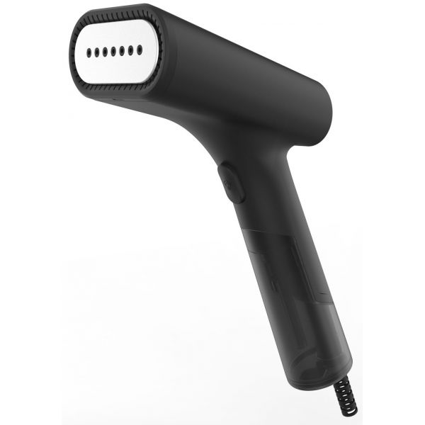 Ця чорна парова праска складається з бойлера, який можна залишити на підлозі, і пістолета, який розсіює пару. Дві частини з'єднані товстим шнуром. Його дизайн зробить його непомітним, де б ви його не зберігали, у коморі чи в гардеробній, щоб він завжди був під рукою.