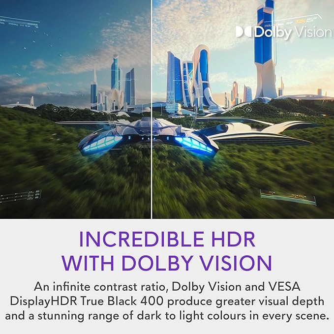 Нескінченний коефіцієнт контрастності, Dolby Vision і VESA DisplayHDR True Black 400 забезпечують більшу візуальну глибину і приголомшливий діапазон темних і світлих кольорів у кожній сцені.