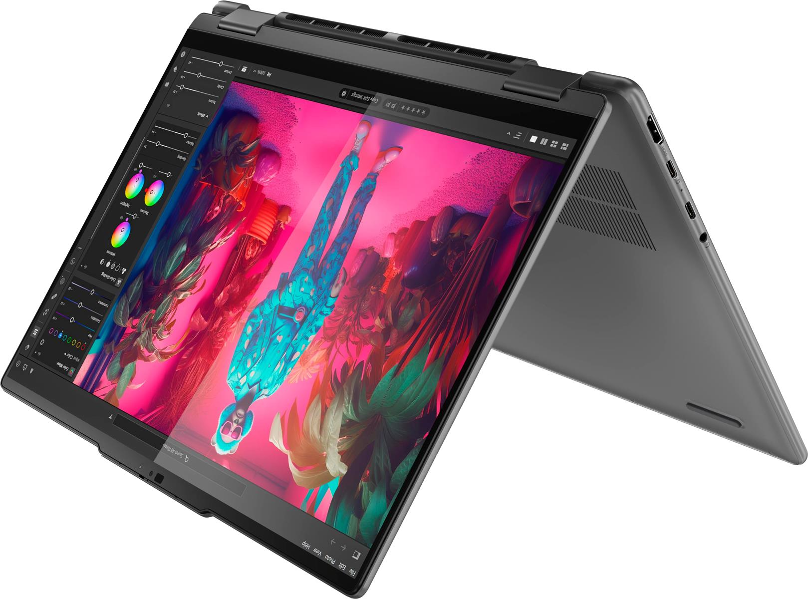 Тонкий, легкий і неймовірно автономний Yoga 7 2-in-1 14IML9 має стильний алюмінієвий корпус та потужні компоненти, що забезпечують його продуктивність. Процесор впорається з ресурсомісткими додатками та мультизадачністю, а яскравий сенсорний екран відображає реалістичне зображення. Використовуйте Yoga 7 у режимах «планшет», «лептоп», «тент» чи «стенд» для різноманітних завдань.