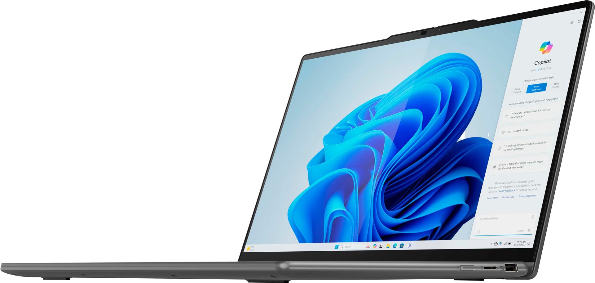 Yoga 7 оснащений процесором Intel Core, який здатний підвищувати тактову частоту при максимальному навантаженні. Для стабільної роботи з декількома програмами одночасно пристрій має оперативну пам’ять LPDDR5, а SSD дозволяє зберігати сотні улюблених фільмів і тисячі фото, забезпечуючи швидкий запуск додатків.