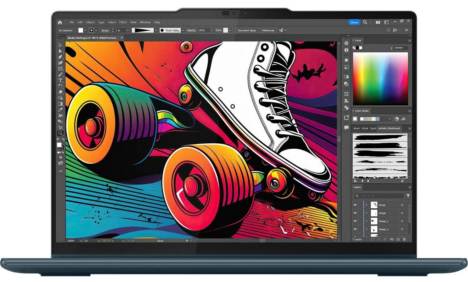 Yoga 7 оснащений процесором Intel Core Ultra. Для стабільної роботи з декількома програмами одночасно пристрій має оперативну пам’ять LPDDR5-7467, а SSD дозволяє зберігати сотні улюблених фільмів і тисячі фото, забезпечуючи швидкий запуск додатків.
