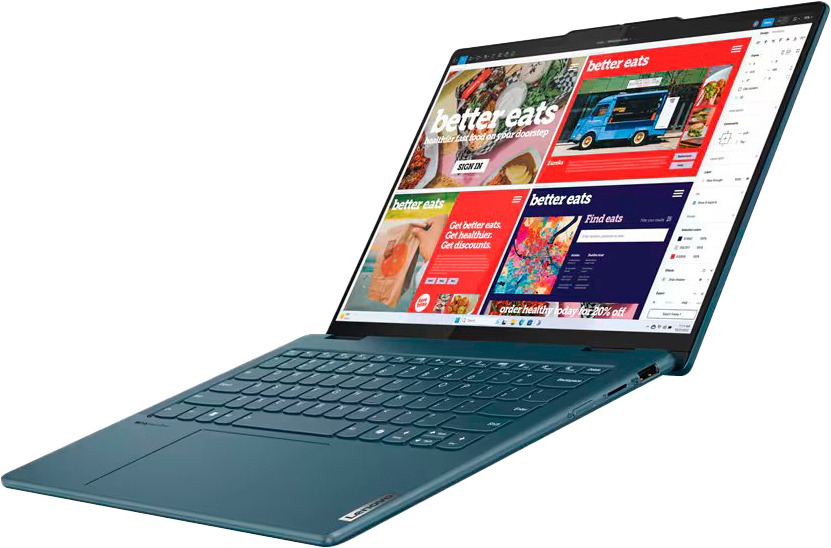 Yoga 7 вагою лише 1,61 кг легко носити з собою, а акумулятор забезпечує до 14 годин автономної роботи. Модуль Wi-Fi 6E гарантує стабільний зв’язок, а вебкамера 1080p з шторкою Privacy Shutter збереже приватність під час відеодзвінків.