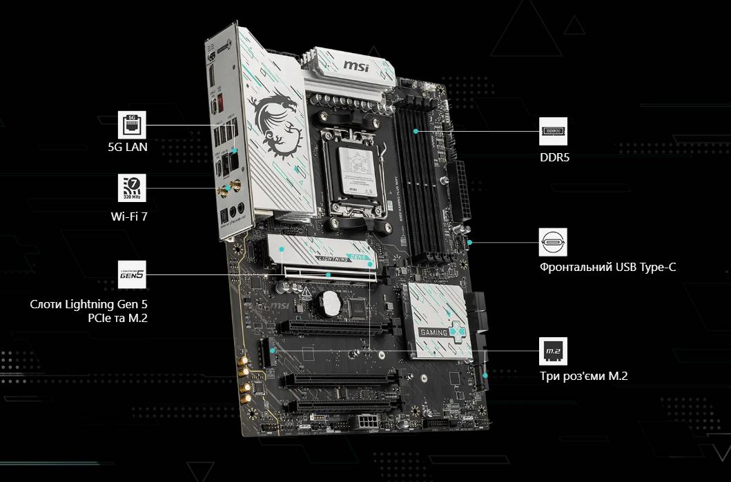 Материнська плата MSI B850 Gaming Plus WiFi Socket AM5