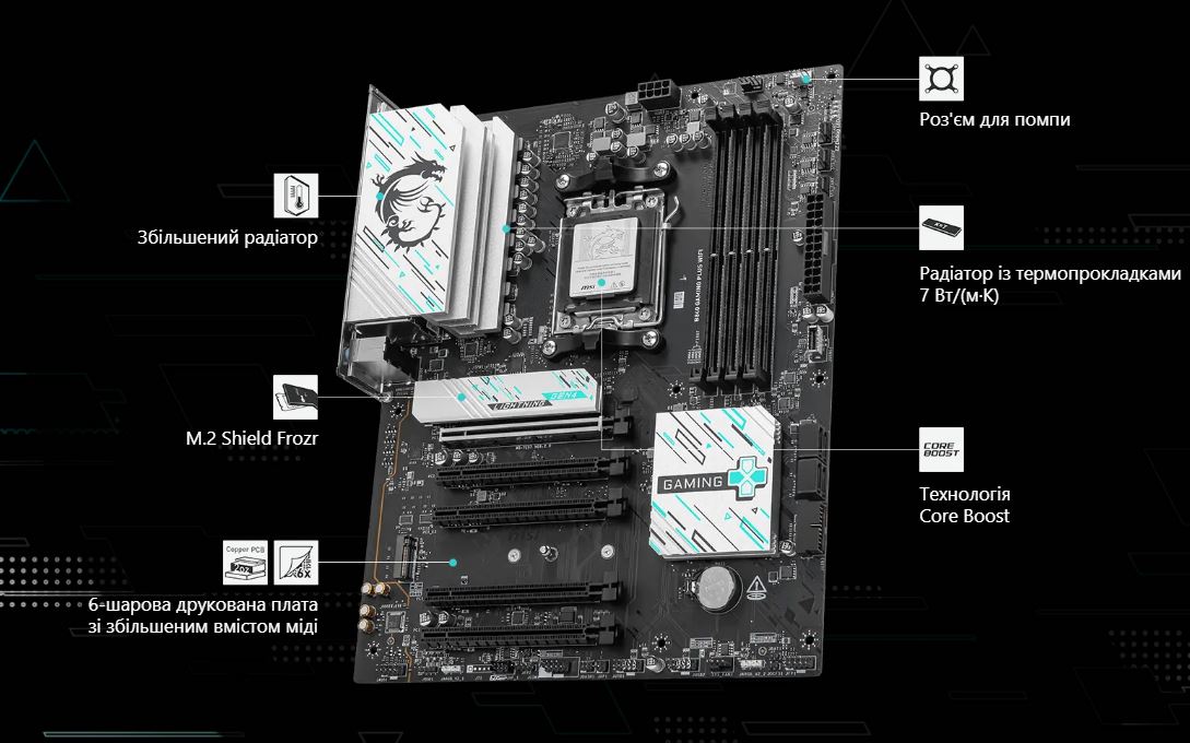 Характеристики Материнська плата MSI B840 Gaming Plus WiFi Socket AM5