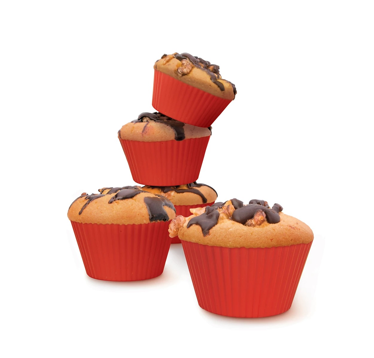 Виймати мафіни або кекси із цих форм для мафінів для мультипечі легко завдяки гнучкому матеріалу. Гофровані краї надають мафінам ще кращого вигляду! Ці форми для мафінів для мультипечі, виготовлені із силікону без запаху, можна використовувати повторно!