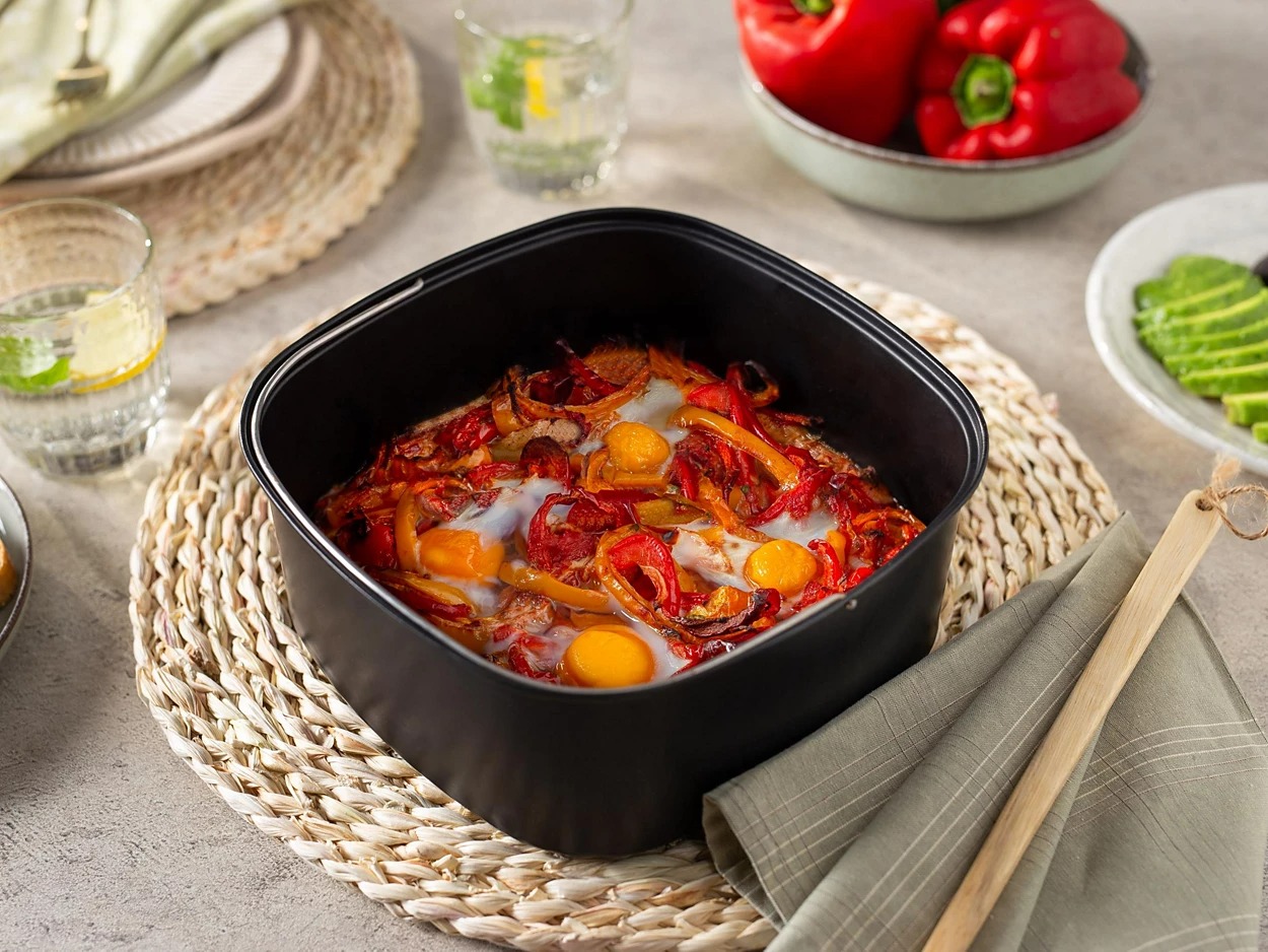Завдяки цьому спеціальному набору для випічки Philips Airfryer Family Sized XXL ви зможете приготувати всі улюблені тістечка. Противень об’ємом 3 л ідеально підходить для створення великих порцій для всієї родини і випробування нових рецептів, від однопотових страв і рагу до різноманітних овочів, м’яса і десертів.