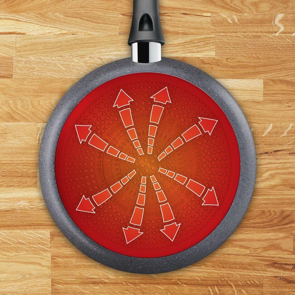 Завдяки основі Diffusion+ тепло добре розподіляється по всій сковороді, забезпечуючи відмінне рівномірне приготування страв.