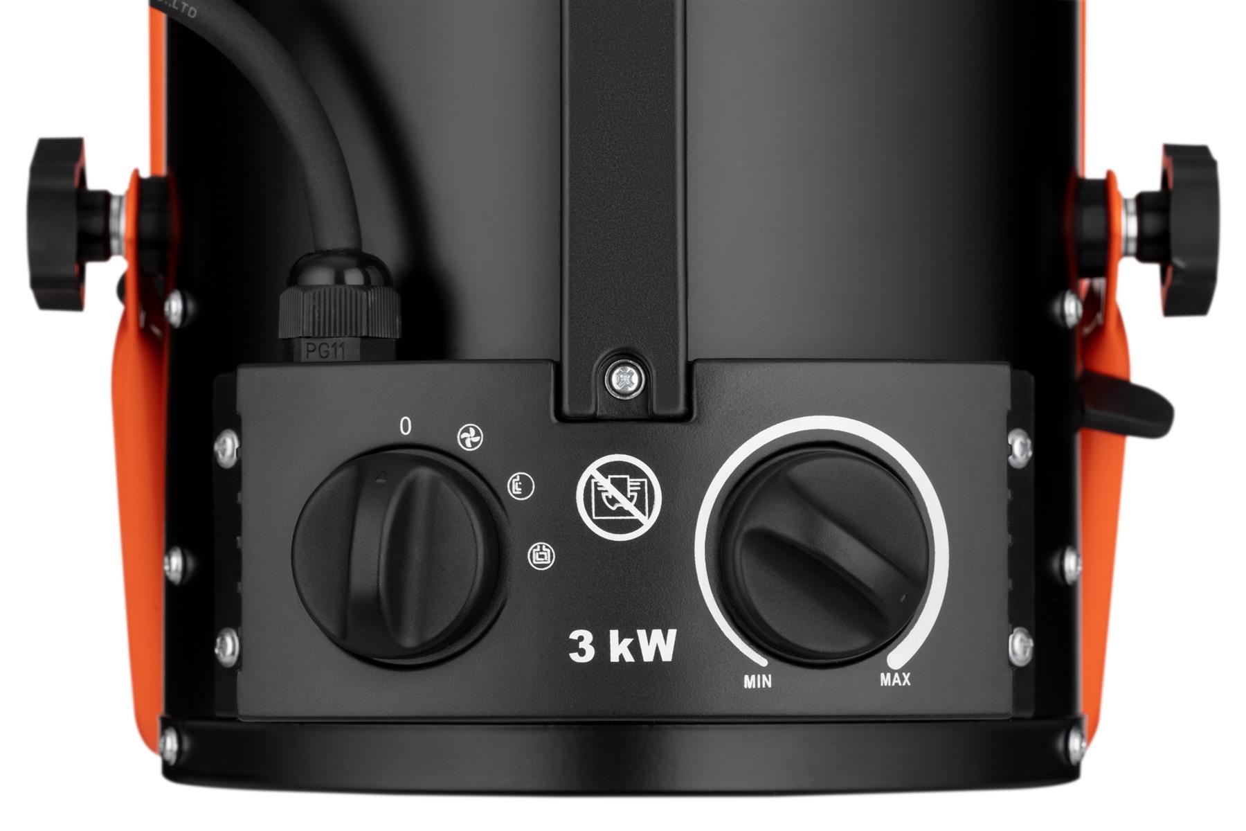 Гармата, що нагрівається 2E AHT3000 майже миттєво завдяки нагрівальному елементу з нержавіючої сталі потужністю 3кВт, якої достатньо для обігріву приміщення площею 30 м2. Потужність можна регулювати – наявний вбудований термостат.