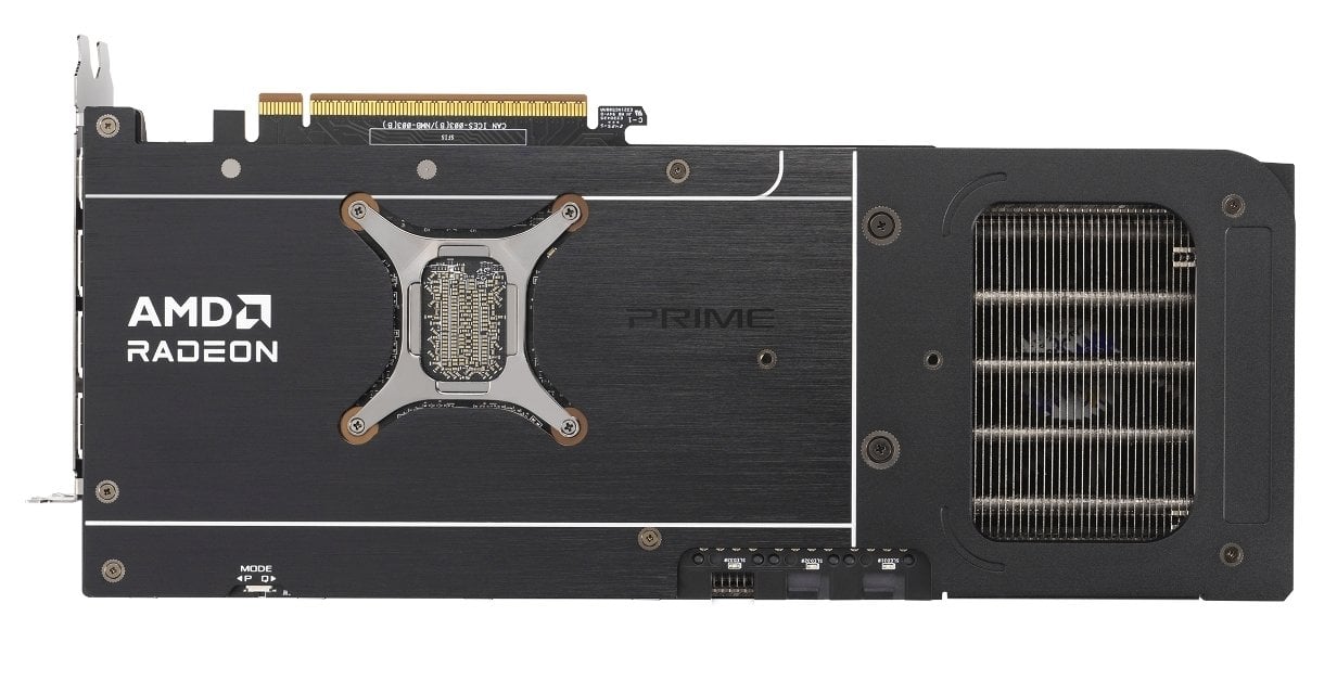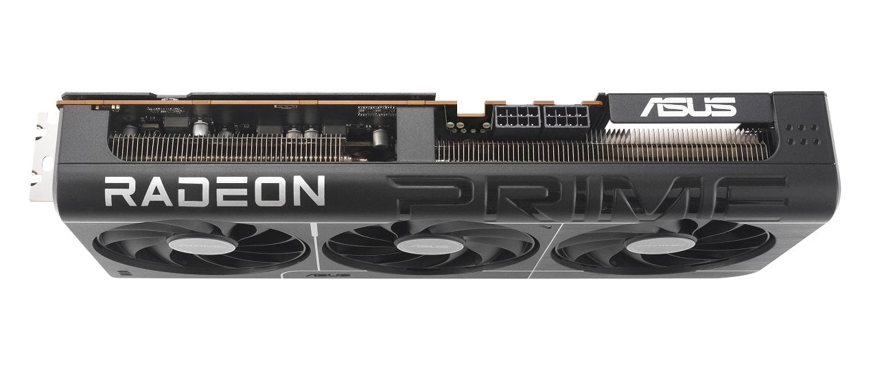 Дизайн 2.5 слота Prime Radeon RX 9070 отримала дизайн 2.5 слота з ретельно продуманим розташуванням кожуха, радіатора й теплових трубок. Це дозволяє трьом вентиляторам Axial-tech використовувати вентиляцію з бокової панелі корпусу та досягати оптимальної теплопровідності.