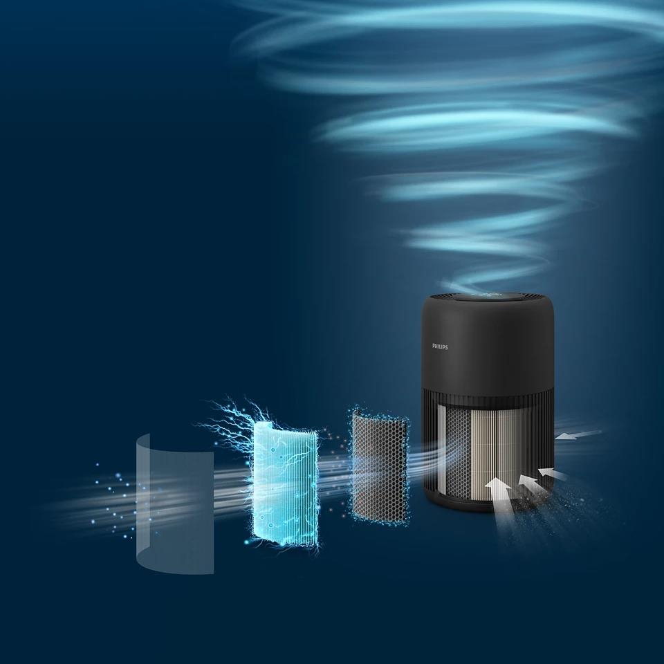 Тришарова фільтрація, що складається з фільтра попереднього очищення, HEPA NanoProtect та активного вугілля, вловлює 99,97% частинок розміром до 0,003 мікрона – менше, ніж найменший відомий вірус!