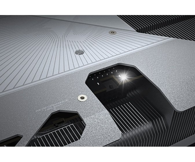Система охолодження WINDFORCE забезпечує виняткову теплову продуктивність завдяки поєднанню передових технологій. Вона оснащена композитним металевим мастилом, теплопровідним гелем серверного класу, інноваційними вентиляторами Hawk із поперемінним обертанням, надпровідними тепловими трубками, великою випарною камерою, активними 3D-вентиляторами та поліпшеним охолодженням екрана.