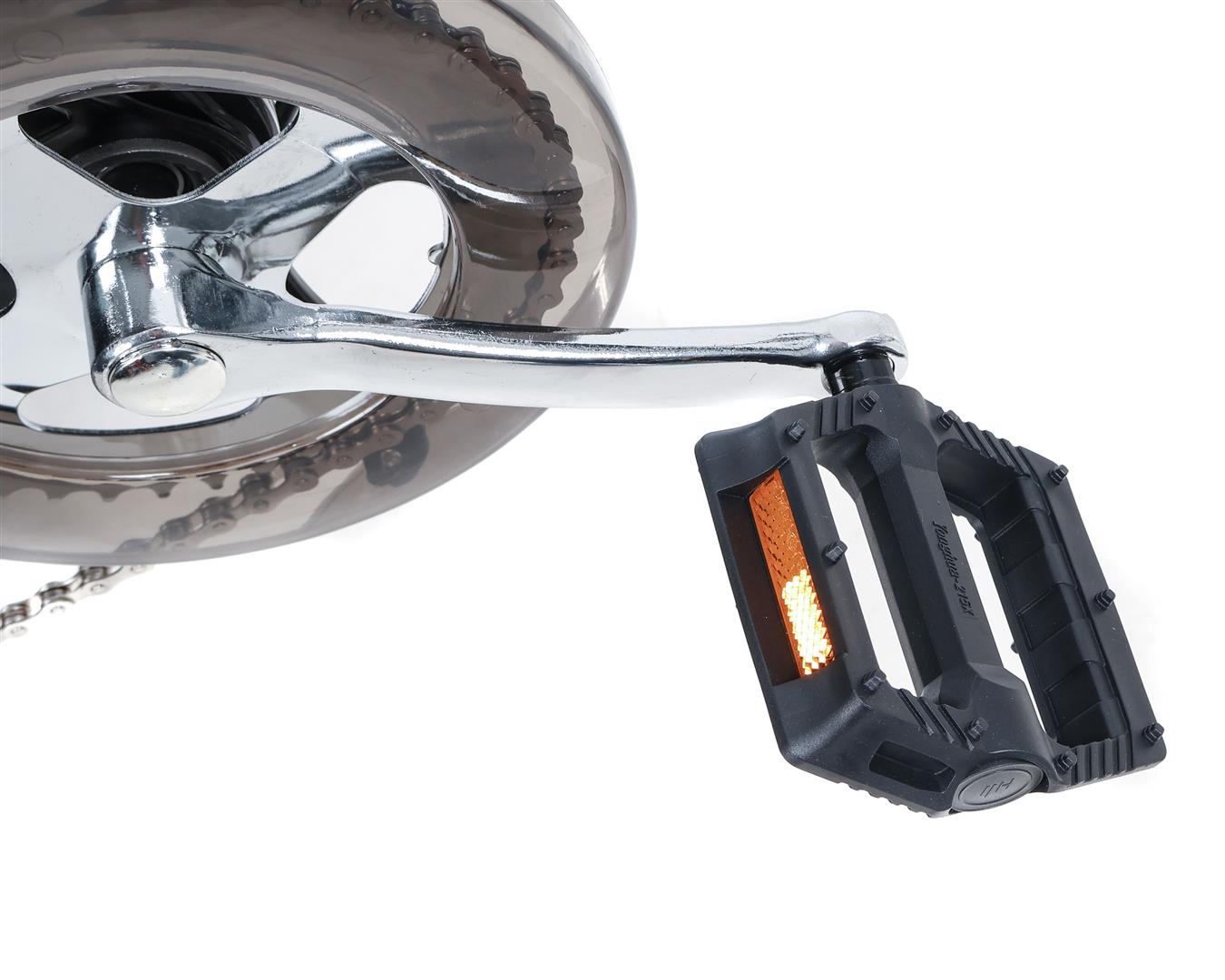 Maxxter City оснащений амортизаційною вилкою, ліхтарем та звуковим сигналом, заднім багажником, а також перемикачем передач Shimano.