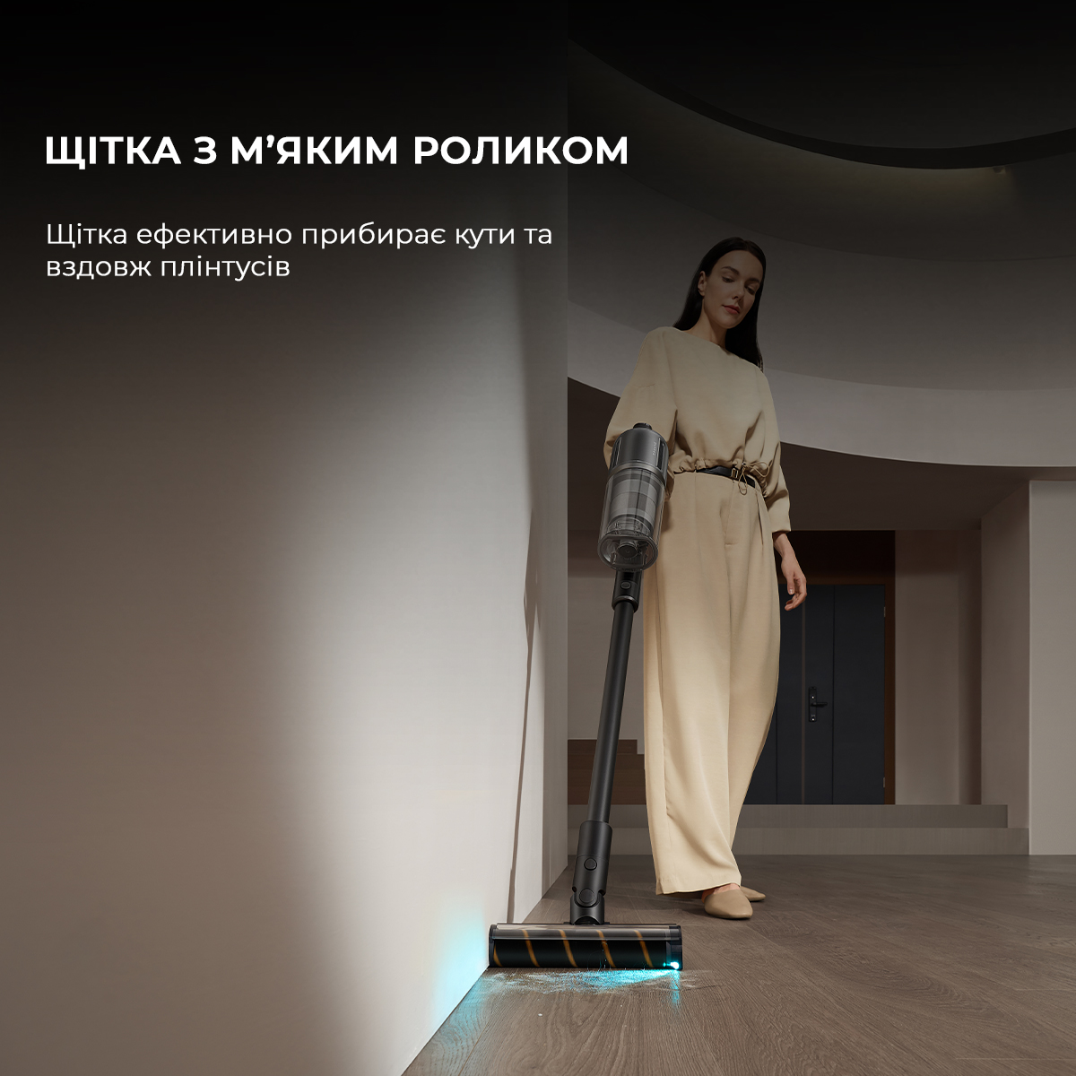 Dreame Z30 має високу гнучкість завдяки своїй продуманій конструкції та рухомому з’єднанню між щіткою та основною трубою. Це дозволяє пилососу легко проникати у важкодоступні місця, включаючи ділянки під меблями, такі як дивани, ліжка та шафи. Завдяки тонкому профілю насадки та можливості нахиляти ручку майже до підлоги, пилосос ефективно збирає пил та бруд навіть у найвужчих просторах, забезпечуючи ретельне та комфортне прибирання.