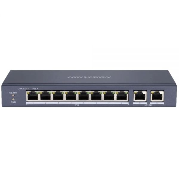 Модель оснащена вісьмома портами Downlink (10/100 Мбіт/с), кожен з яких підтримує стандарти PoE та PoE+ (IEEE 802.3af/at). Сукупний енергетичний бюджет досягає 80 Вт, що дозволяє запітати до восьми пристроїв з споживанням до 30 Вт на порт. Для підключення до магістралі передбачені два гігабітних Uplink-порта (10/100/1000 Мбіт/с), які забезпечують швидку та стабільну передачу даних.