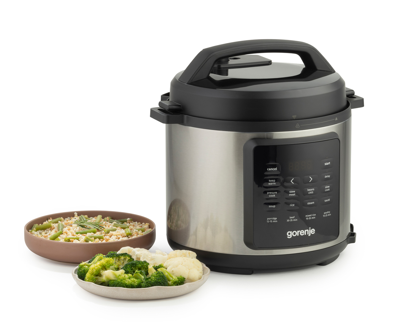 Мультиварка-скороварка Gorenje – це сучасний багатофункціональний прилад, який дозволяє швидко й легко готувати різноманітні страви. Потужність 1000 Вт у поєднанні з функцією приготування під тиском забезпечує значну економію часу без втрати смаку.
