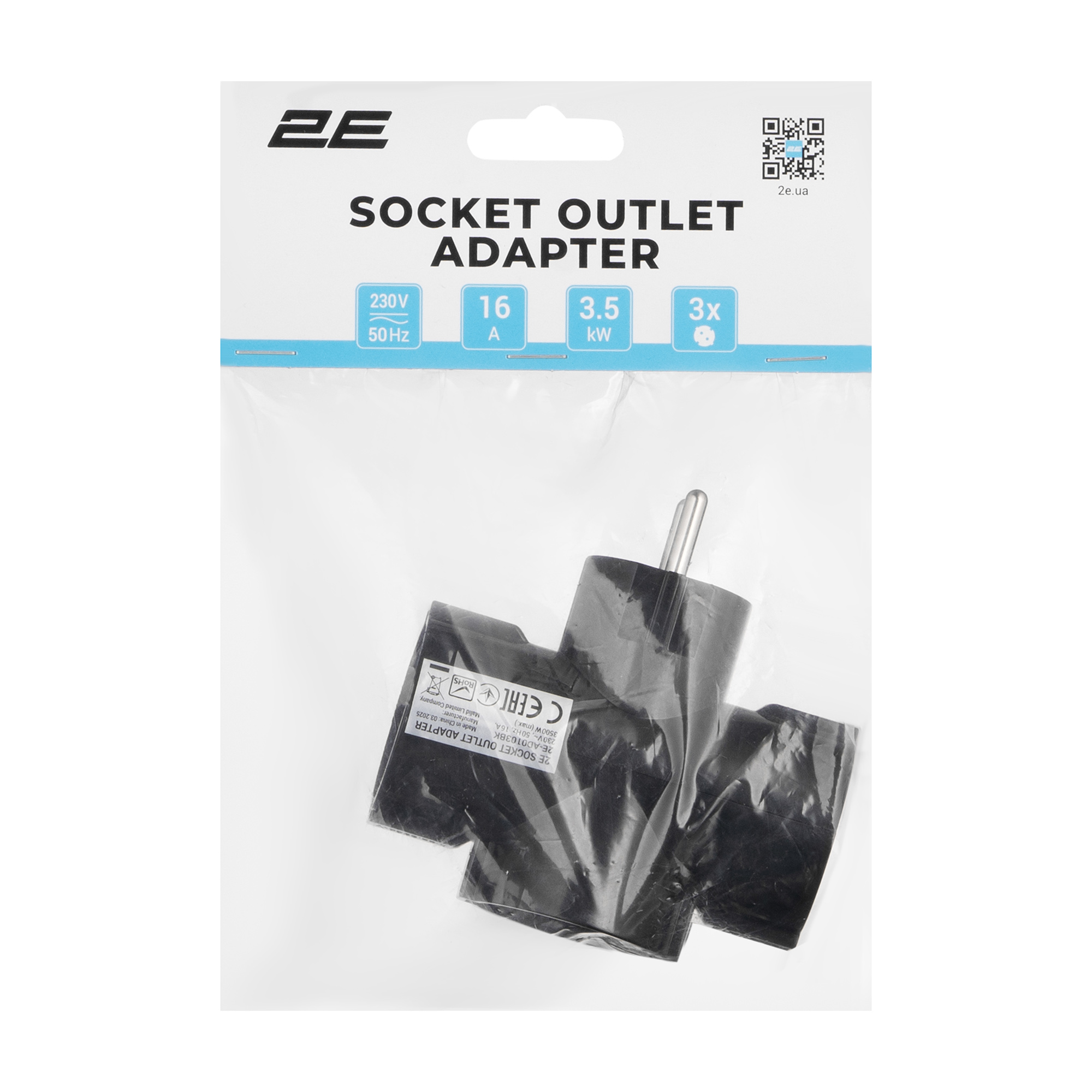 Мережевий адаптер 2E 3xТип F, 16A, чорний (2E-AD0103BK)