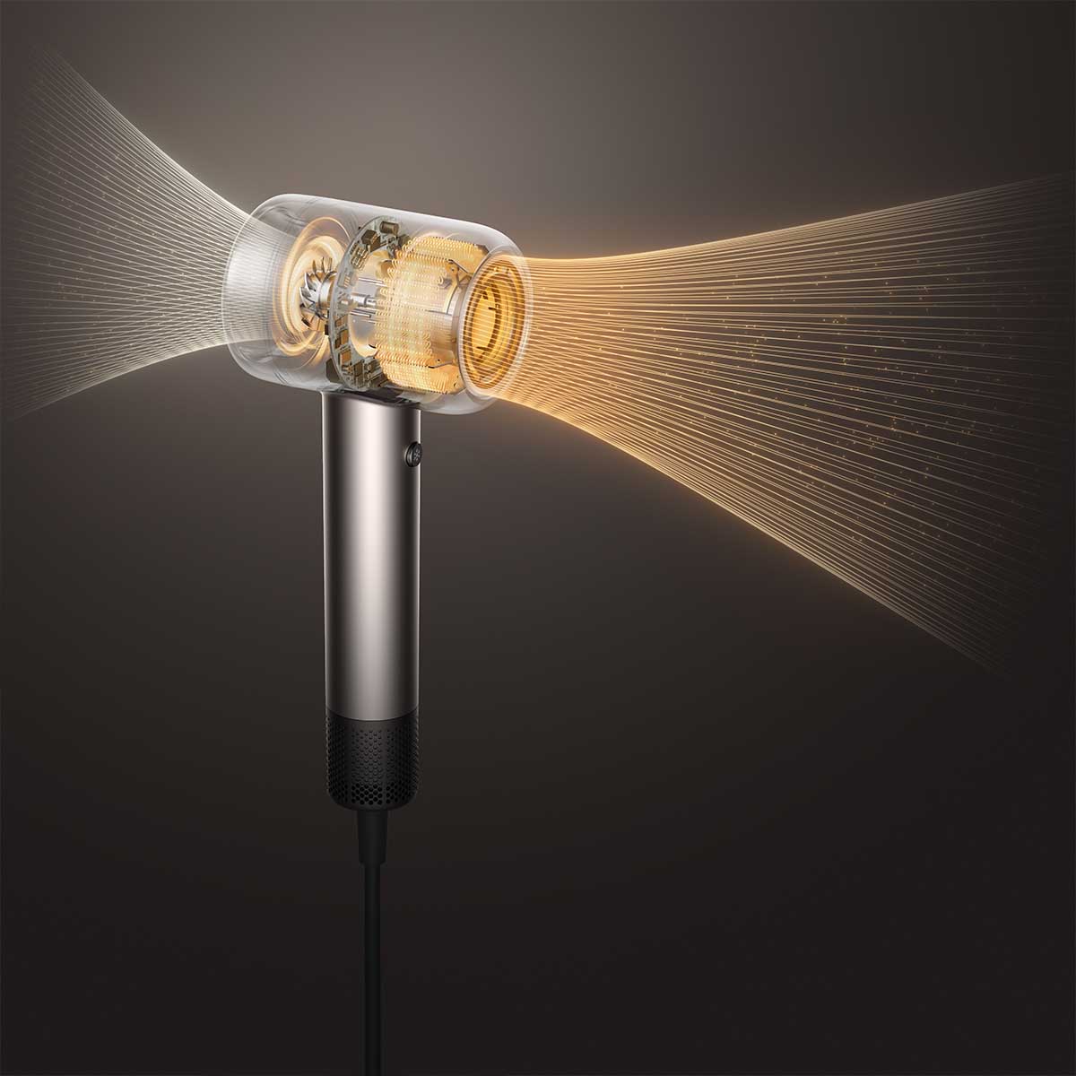 Оснащений двигуном великого діаметра, що працює зі швидкістю 110 000 об/хв, та високопродуктивною системою потужністю 2000 Вт, Gusto генерує потужний потік повітря з широким покриттям, забезпечуючи в 1,5 раза швидше та ефективніше сушіння та укладання.