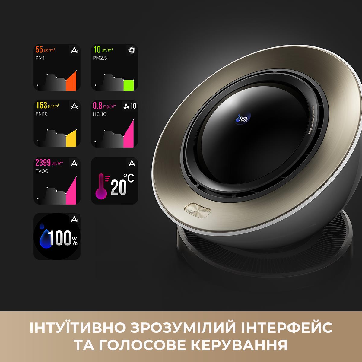 Інтерактивний РК-дисплей точно відображає поточні рівні забруднювачів, зокрема алергенів, формальдегіду і Т?ОС, показуючи результати очищення повітря для вашого спокою.