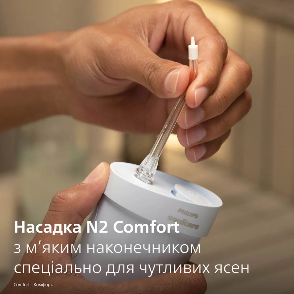Насадка N2 Comfort має м’який наконечник, спеціально розроблений для чутливих зубів та ясен.