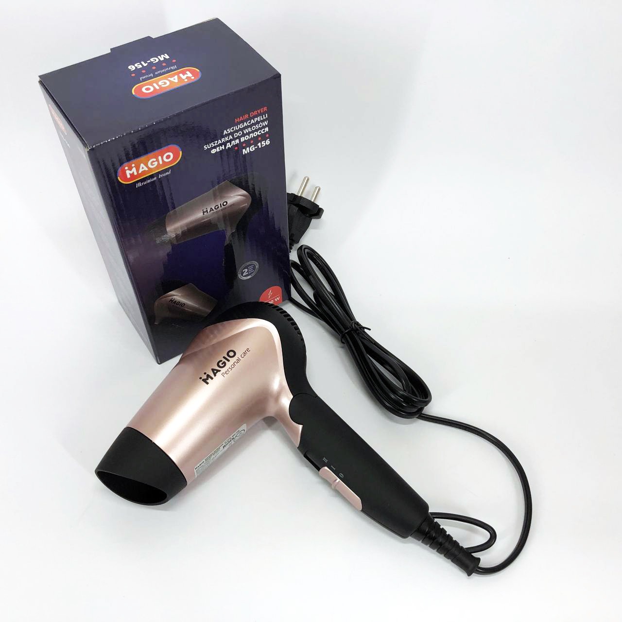 Фен Magio MG-156 - это компактный дорожный фен, который обладает стильным дизайном и складной конструкцией, что позволяет ему легко помещаться в сумку или чемодан.
