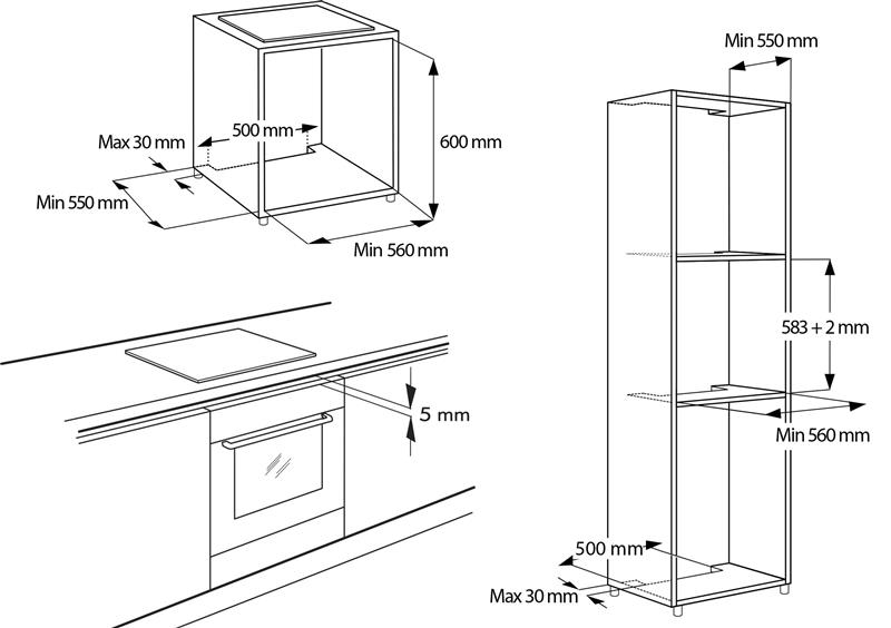 | Габариты встраивания (ШхВхГ) | 560×600×550 мм |